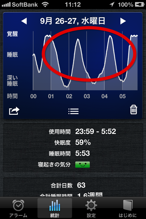 この日はかなり熟睡出来たのですが、睡眠の波が激しくありません。