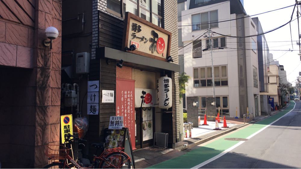 「博多ラーメン 和」は赤坂見附駅から少し歩いて奥まった路地の中にあります。はじめて行く場合は少し迷うかもしれません。私は赤坂に普段行くことはあまりないので、本当にこのあたりに目当てのラーメン屋さんがあるのか不安になりました。